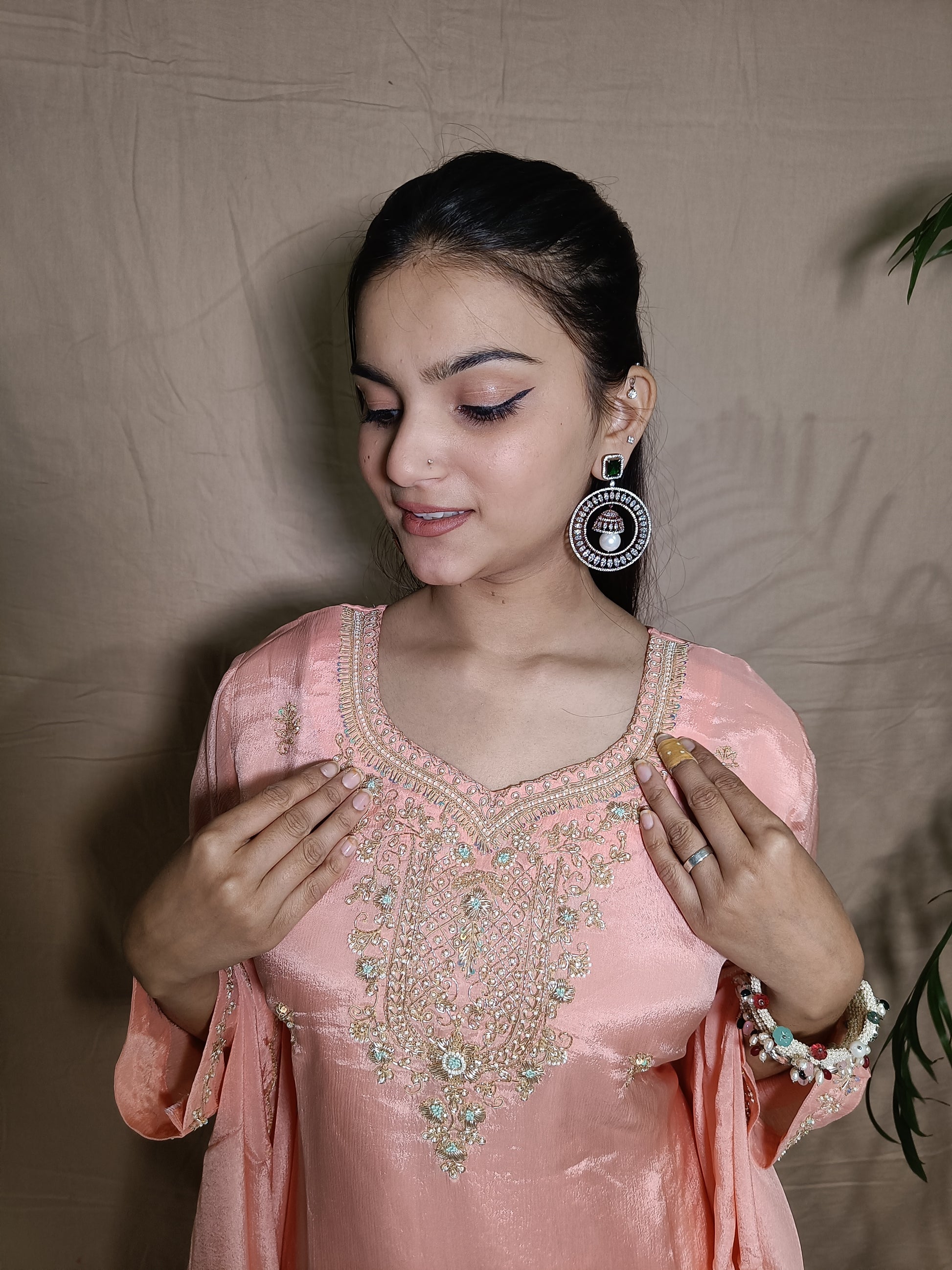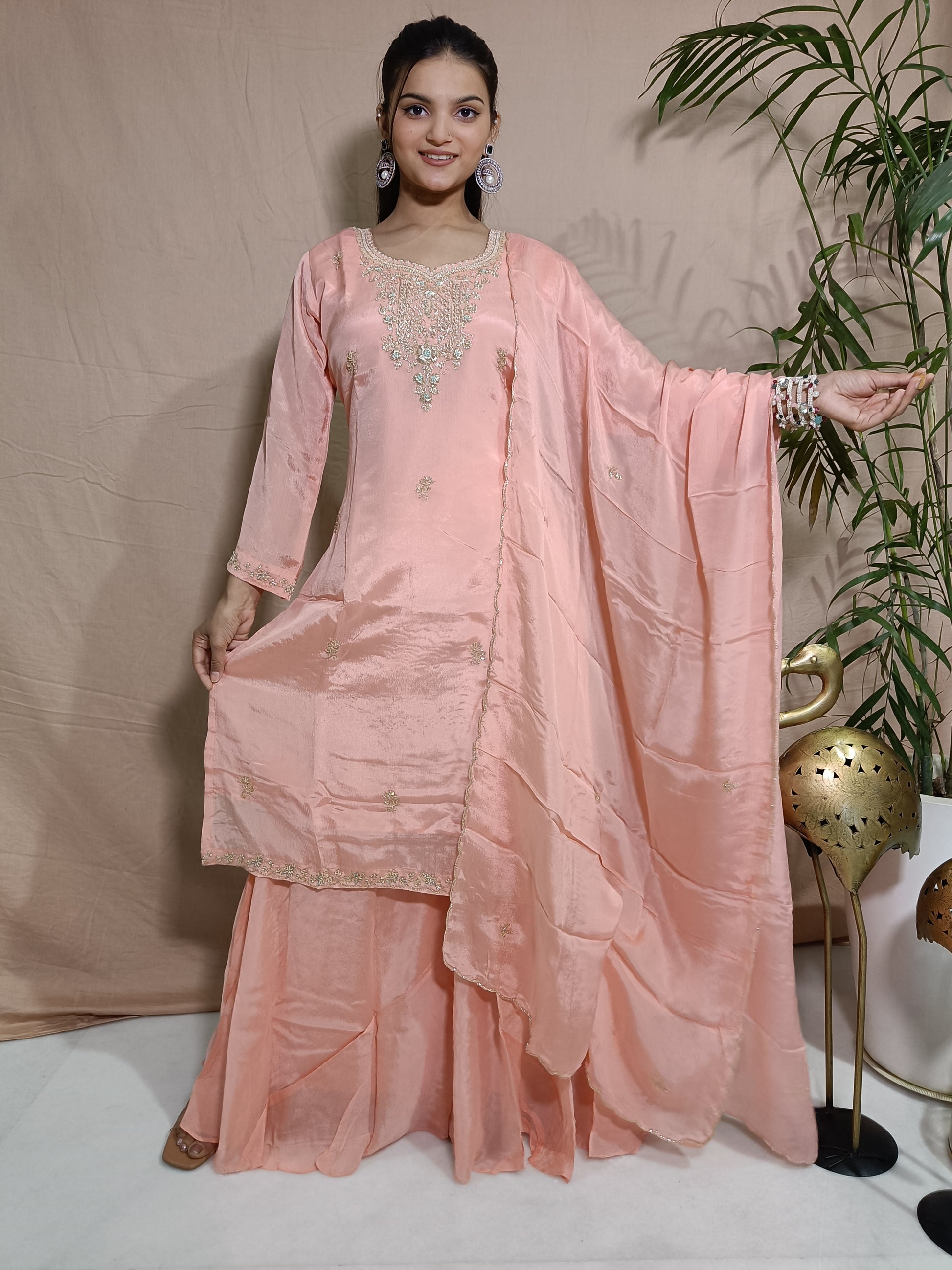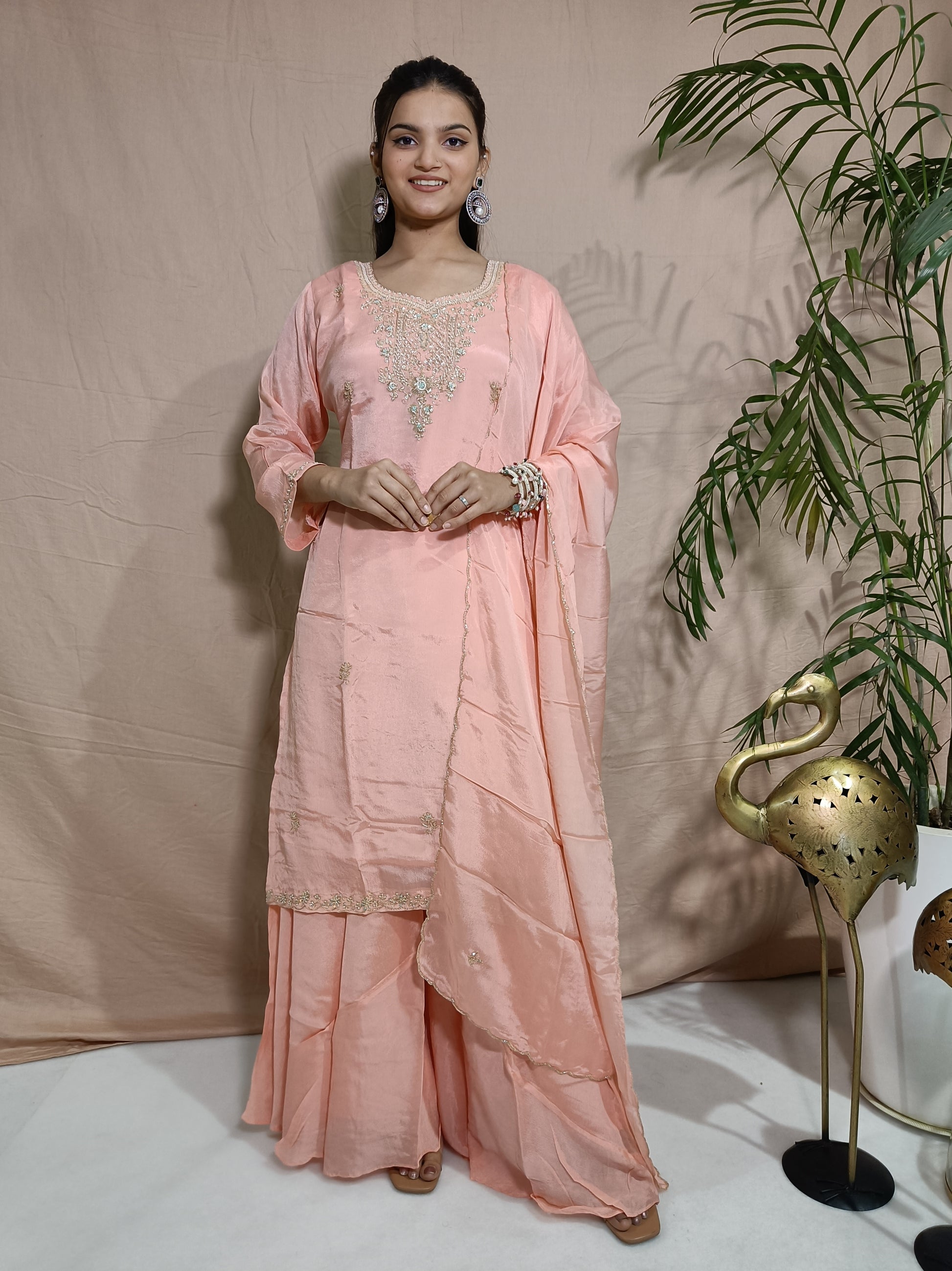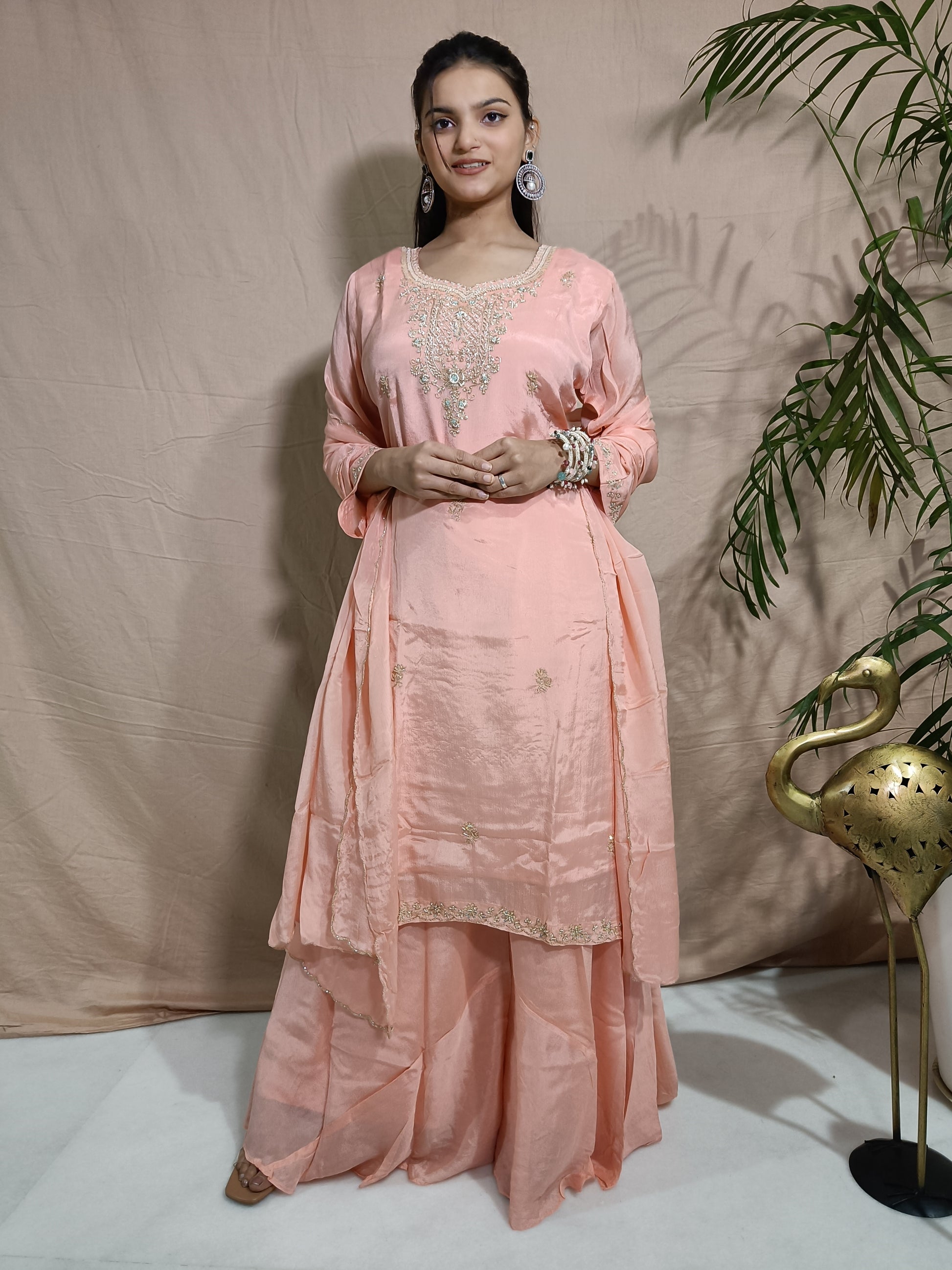 Baby Pink Tissue Shimmer Kurta with Zardosi Handwork