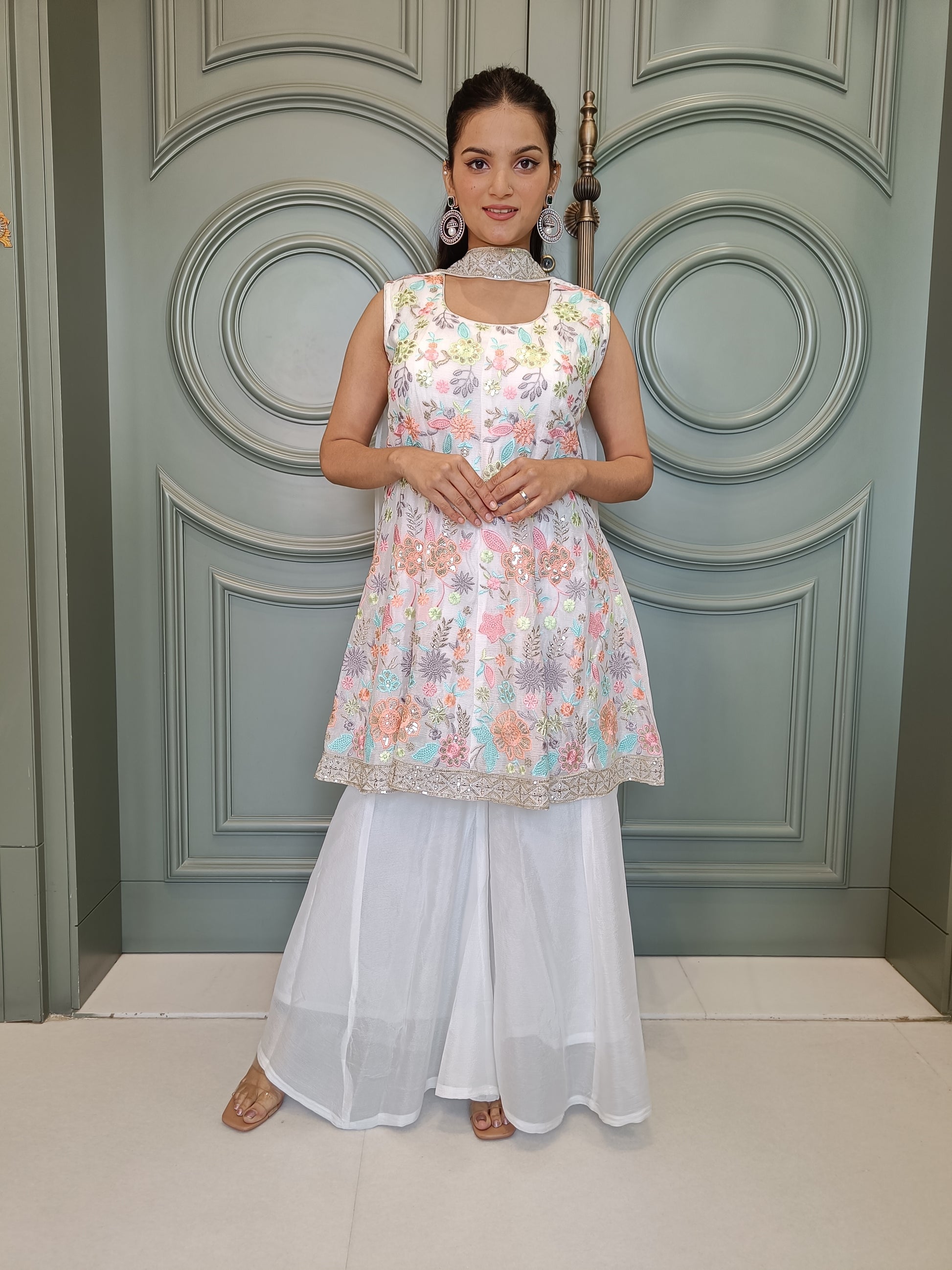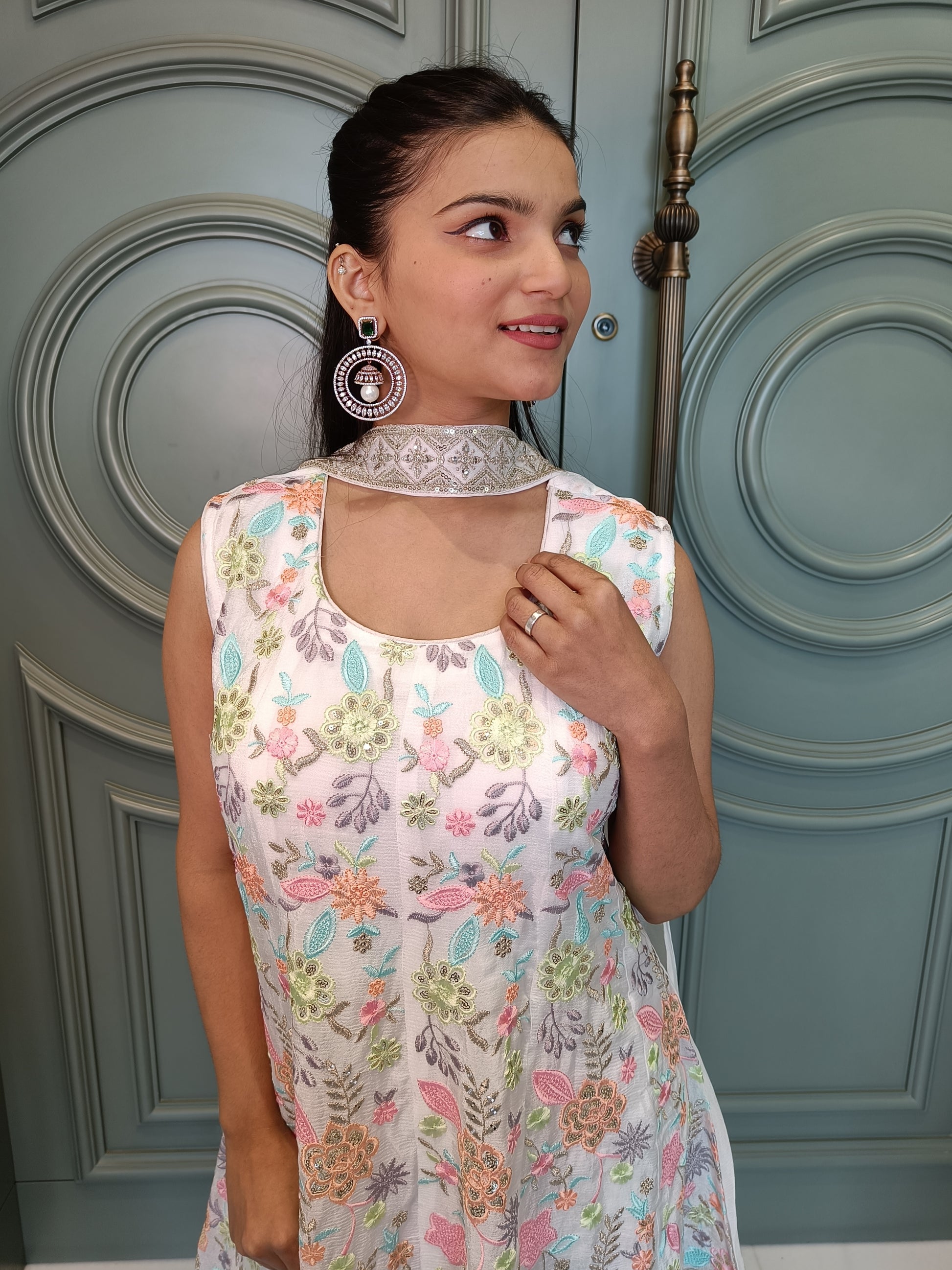 Graceful Chinon A-Cut Kurta Set with Choker Dupatta